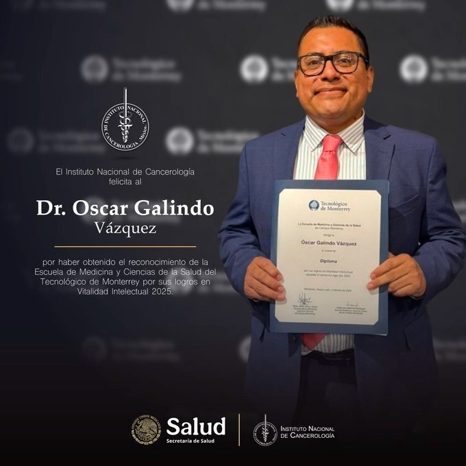 MONTERREY, Nuevo León.- La Escuela de Medicina y Ciencias de la Salud del Instituto Tecnológico de Estudios Superiores de Monterrey (Itesm) otorgó un reconocimiento al Doctor Óscar Galindo Vázquez.